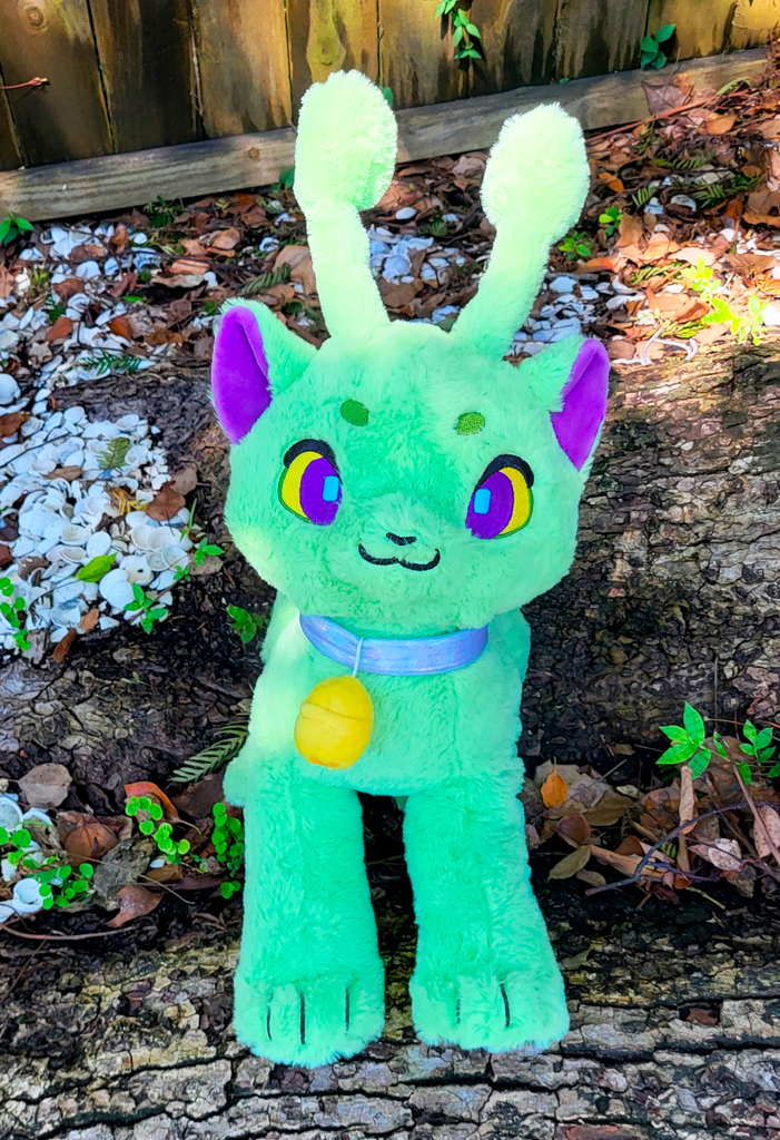There is nothing to fear once you have a companion like Void the Cosmic Kitten. With eyes that glow in the dark, 18" of shadowy softness, and a cool, collected personality, she is always there to watch over you at night, and chase off the pesky monsters under your bed.
